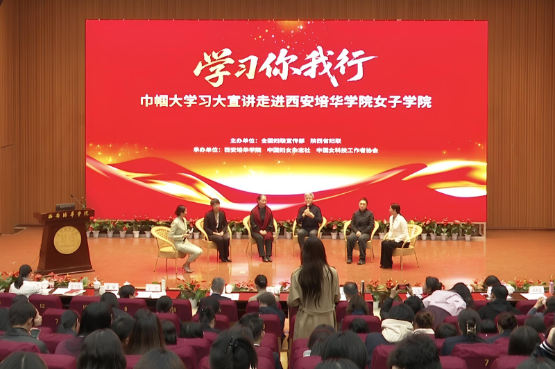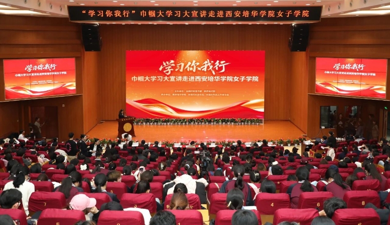 为深入学习贯彻党的二十届四中全会精神与全球妇女峰会精神,加强女大学生思想政治引领,激励更多女性投身科技创新事业,近日,由中国女科技工作者协会与全国妇联宣传部、陕西省妇联共同承办的“学习你我行”巾帼大学习大宣讲活动在西安培华学院女子学院成功举办。活动邀请5位来自不同领域的先进女性代表,结合自身奋斗经历,讲述不忘初心、勇担使命的感人故事,传递巾帼榜样力量。西安培华学院500余名师生现场参加,中国女子高等院校联盟其他11所院校及全国妇女爱国主义教育基地代表逾五万人线上观看直播并参与联动。