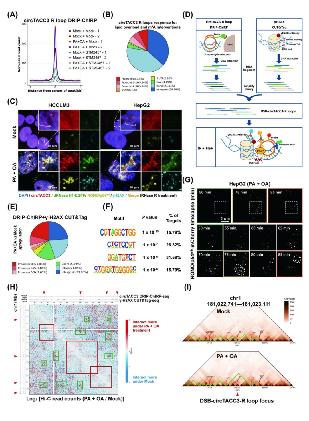 研究指出,脂质应激条件下,依赖于m⁶A RNA甲基化修饰的环状circTACC3-paraspeckle(旁斑)结构组装可以在DNA双链断裂点区域形成circRNA-DNA杂交体(CircR loops),从而导致染色质重塑、并选择性激活与MASH-HCC恶性进展相关的基因。这一新的机制发现为潜在的MASH-HCC治疗靶点提供了依据。
