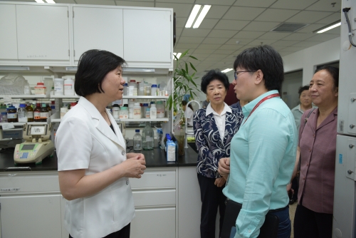 会前,沈跃跃还参观了生物物理研究所核酸生物学重点实验室副主任毕利军研究团队实验室,了解女科学家带领的团队的工作科研情况。当得知毕利军团队经过长期努力,在结核病治疗和临床应用方面取得了重大创新成果后,她由衷地赞叹,从事科学研究,就要肯下“数十年磨一剑”的苦功夫,成果来之不易,希望大家再接再厉,向着科研目标继续前进。