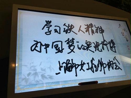 曲雁会长在参观时写下感言:“学习铁人精神,为中国梦的实现拚博。上海市女工程师协会”