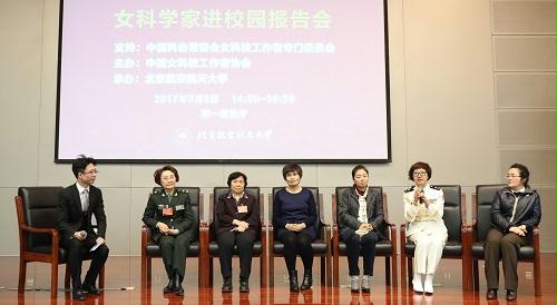 3月8日下午,协会组织了女科学家进校园报告会。由协会副会长、中国工程院院士王红阳率队,中国科学院南京天文科学技术研究所研究员、协会常务理事、中国科学院院士崔向群,以及协会会员中国航天员科研训练中心研究员李英贤、西安电子科技大学教授李赞、海军装备研究院研究员崔东华,北京协和医学院教授、中国医学科学院医学实验动物研究所所长、协会常务理事秦川分别作报告并和现场轻年学子进行了面对面的交流,北京航空航天大学300多名学生代表参加了活动。