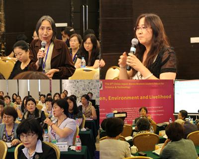 会上,来自中国、日本、韩国的10位专家作了非常精彩的发言。围绕《妇女赋权》专题,专家从社会、经济、立法等方面介绍了三国女性赋权的当前现状,描述了女性在科学、工程和技术领域所发挥的作用与影响;就《妇女与可持续生计》专题,专家介绍了当前的社会分工、女性作用和可持续生计的发展现状;围绕《科技促进环境保护与发展》专题,专家们从气候变暖等不同的领域、不同角度提出科技创新如何解决境污染、土地沙漠化等问题,为我们展示了科技女性在低碳绿色增长实施的一系列科技活动等。讨论过程中,三国代表和参会人员还对各国目前促进女科技工作者成长与发展的相关政策交换了意见。参加论坛的女科学家强烈呼吁:提倡在社会经济科技等领域的统计中纳入性别指标;女性相关政策应该从传统的保护女性向着促进女性参与和使女性平等获得资源方向等方面转变;从政策等层面给予经孕哺期重返职场的女性以足够的支持等。