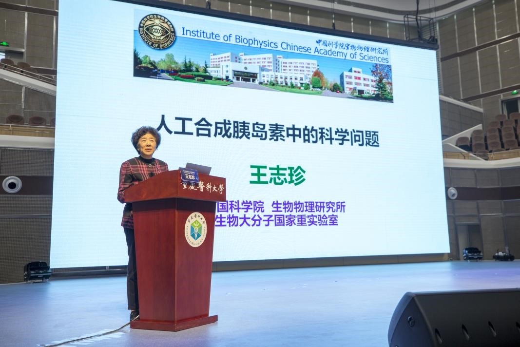 王志珍院士跟现场同学分享了她和团队从事人工合成胰岛素研究时的科学背景以及在研究过程中鲜为人知的故事,通过她的自身科研经历和成长感悟,激励广大学子积极投身科技事业,不断追求真理、攻坚克难、砥砺奋进。