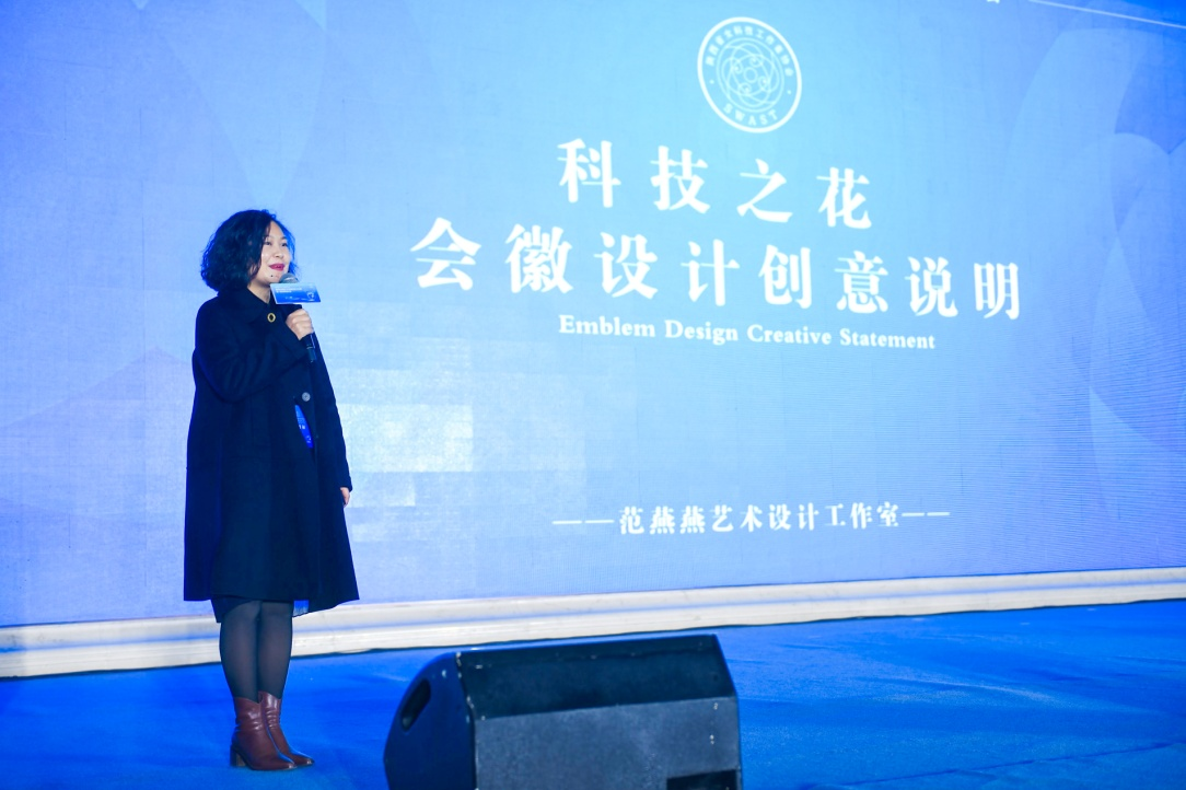 会议特别邀请设计师范燕燕女士做会徽创意说明。会徽以生命之花衍生科技之花,诠释了女科技工作者为科技之源,绽放巾帼智慧之美的理念。