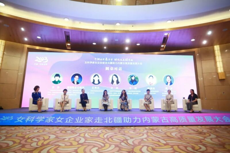 在圆桌对话环节,北京女科技工作者协会常务副会长、全国妇联执委、中国科学院原北京分院副院长李静,首钢集团有限公司技术研究院首席技术专家青格勒吉日格乐,中国科学院遗传发育所研究员、中心主任王秀杰,中国医学科学院基础医学研究所副所长、研究员许琪,中国科学院地质与地球物理研究所研究员李娟,中国科学院自动化研究所研究员赵晓光,中国农业大学植物抗逆高效全国重点实验室教授傅缨等围绕落实习近平总书记交给内蒙古的五大任务——科技助力“她力量”,分别介绍了自己所从事的技术研究领域、取得的最新成果及科技创新态势;围绕习近平总书记交给内蒙古的五大任务,结合自己的科技创新经历,畅谈如何激发女性人才的创新活力,鼓舞更多女性投身科技事业,在建设科技强国、推动高质量发展中发挥“她力量”;结合内蒙古的科技创新需求,探讨了如何充分发挥区外女性科技英才作用,助力内蒙古走好以生态优先、绿色发展为导向的高质量发展新路子,为内蒙古的经济社会发展和“科技兴蒙”贡献力量。
