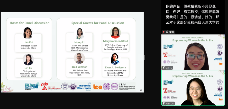 联合国妇女地位委员会(CSW)是专门致力于促进两性平等和赋予女性权力的主要全球政府间机构,在促进女性权利、记录全世界女性生活的现实、制定关于两性平等和赋予女性权力的全球标准方面发挥了重要作用。第69届会议以“AI时代赋能女性”为主题,旨在探讨人工智能技术如何通过构建一个更加多样化和包容性的世界,激发女性的潜能,使个人的激情和才能得以蓬勃发展。中国电源学会女科学家工作委员会WiS-CPSS通过邀请相关领域的杰出科技工作者分享他们的成长经历,并交流各国女性科技工作者的发展现状,为中国电气领域女科技工作者的发展、自信心的增强和创造力的提升作出了积极贡献。