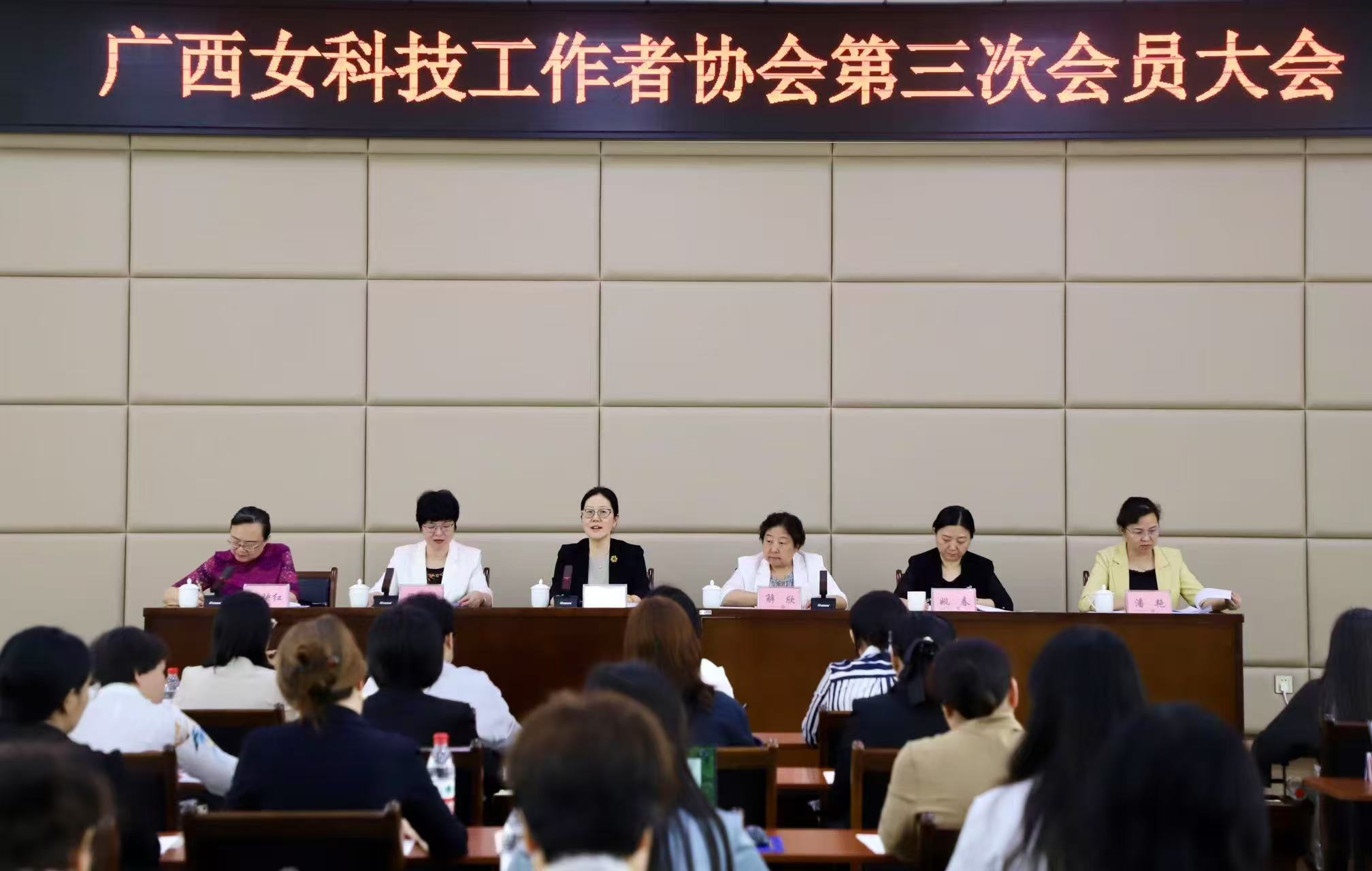 2025年4月28日,广西女科技工作者协会第三次会员大会在广西妇女干部学校召开。自治区妇联党组书记、主席胡晶波,中国女科技工作者协会副会长兼秘书长解欣,自治区科协党组书记、副主席梁春花出席大会并讲话,自治区妇联原一级巡视员陈映红主持会议,来自广西各高校、科研院所、企事业单位等不同领域、不同行业的近80名会员参加大会。