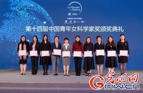 光明网北京1月12日电(记者 李政葳)由全国妇联、中国科学技术协会、中国联合国教科文组织全国委员会、欧莱雅中国共同举办的第十四届“中国青年女科学家奖”颁奖典礼12日在京举行,10位年轻女科技工作者获得“中国青年女科学家”荣誉称号。
